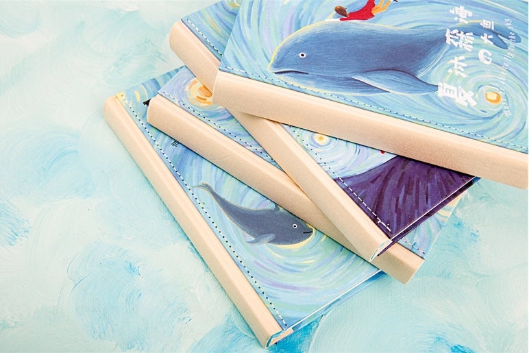 The Big Whale in the Sea Journal - Hard Cover with Magnet Buckle Notebooks - Cute Pattern - A5 cute notebooks - Bullet Journal